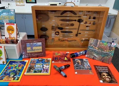 Around the school, students can look at indigenous artefacts in the library which our Aboriginal and Islander Education Officer (AIEO) shared. We also will have a Then and Now QR code scavenger Hunt where students have to decipher the riddle to complete the interactive timeline around the school grounds which focuses on the development of cars and toys. Students will have an opportunity to learn about the customs, traditions and history of Indigenous Australians with an Aboriginal Virtual Reality Headsets incursion through the incursions company.